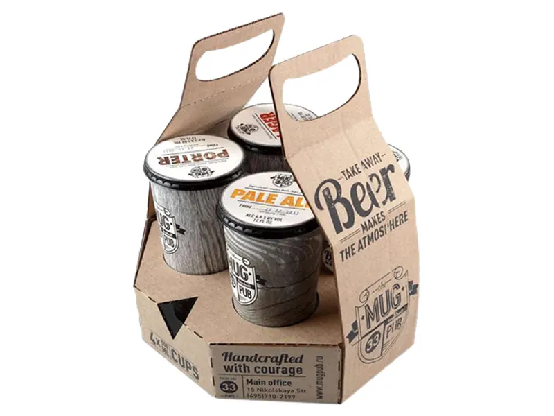 Everyone loves fresh and delicious liquids in easy to carry containers and the customers will always buy them. Get your 4 insert carrier boxes manufactured from sturdy corrugated cardboard or recyclable Kraft that is sturdy enough to safely hold your glass bottles and preserve the flavor and chemical properties giving your customers. Not only that, make your products easy to insert and take out in these 4 insert carrier boxes with special die cut dividers and add an extra layer of protection by obtaining special seal ends that will ensure the products don’t fall off or slip during movement. Additionally, you can also present your products in these carefully engineered 4 insert carrier boxes that will give an impressive first look while allowing the buyers of your product to move around with your item without any worry of spills or breakage. Our packaging experts carefully analyze your product size, the number of product you want to keep and their weight before suggestion the best style and material for these boxes that will give your customers the exact fit while also making them easy to carry around.