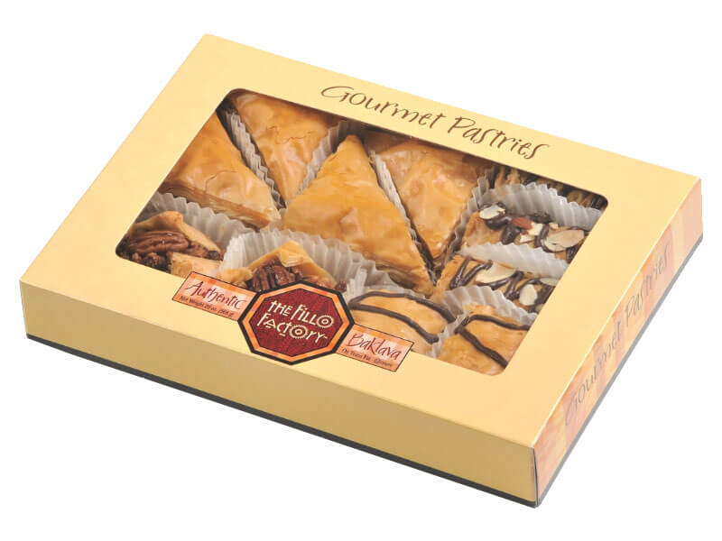 Your finger-licking desserts require safe storage to make them more delightful and appealing. Further, you can elevate the esthetic of its packaging to highlight your baklava convincingly. It doesn’t matter what quantity, shape, size, or design you want, we produce an innovative packaging to meet all your presentation and protection needs. Whether you need individual baklava boxes, small baklava boxes, either boxes for 6 or dozen baklavas in bulk; this is the right place for you. Baklava boxes manufactured at Emenac Packaging are perfect to preserve the taste and freshness of your appetizing desserts for long. With us, your exclusive baklava boxes are meticulously tailored and engineered to your exact specifications. Ideal to display the pleasing appeal of your delicious desserts and maintain their high quality. Contact us now to avail our outstanding baklava boxes.