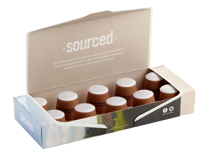| Aroma & freshness protection — pods can’t stale out, catch dust and slip out in transit or on shelf | High barrier SBS/CCNB stocks, foil lined inserts, and secure top enclosure with crash lock bases that hold pods snugly and seal out moisture and dust |