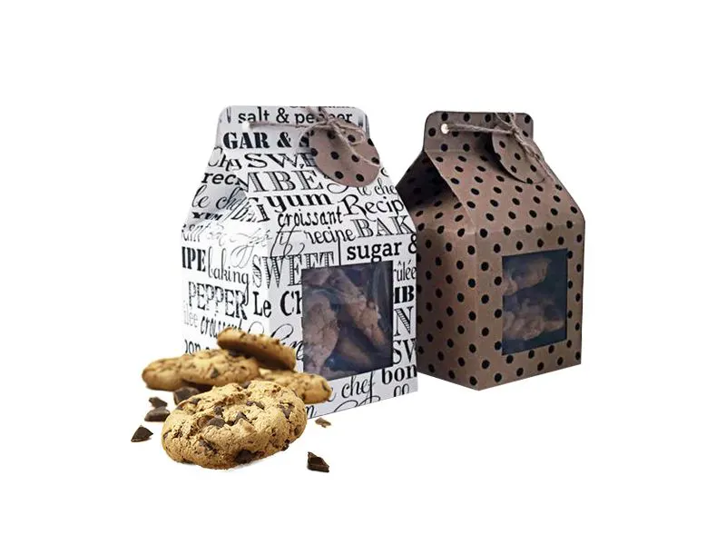 Custom Gable cookie boxes We offer the custom gable cookie hang tab boxes in your desired designs and shapes which are not only appealing to look at, but also enhance the outlook of your retail shelves. You may choose the window gable boxes which have a small opening window on its sides to allow the packed cookies to be seen while also having handles. Perfect die cut Kraft Recycled gable cookie boxes lets you attain the packaging in your desired unique shape with perfect folds and handles. The die cut printing lets us make the packaging with exactly the same edges, corners and folds.