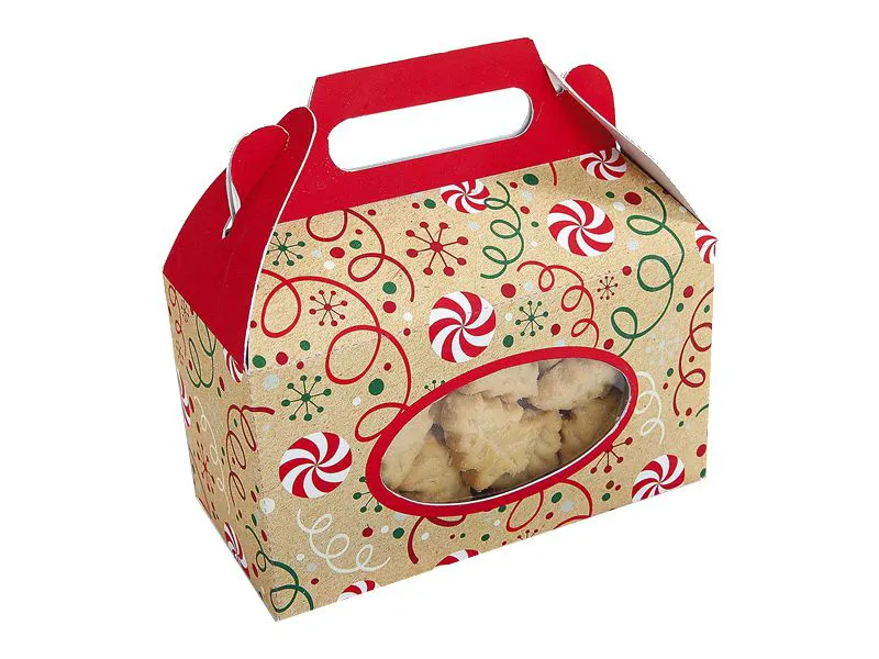 Ordinary and traditional looking four corner cookie boxes are often made in a regular cube-shaped packaging style which needs to be carried with special care and they have no handles on them. Cookies are often consumed by people while on the move and handling regular cubic boxes prove to be a problem. But, our specially designed six corner gable cookie boxes eliminate that problem by adding handles to the packaging. These boxes can have special handles on their top to allow the box to be moved from one place to another. Emenac Packaging specializes in the printing of gable gift fudge cookie boxes which have special handles on their top to offer portability. These Christmas ribbon bow gable biscuit boxes are a primary necessity of every bakery confectioneries manufacturer, retail or ecommerce seller and are given paramount priority in order to satisfy the customers.